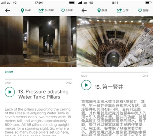 - 見学者に対して首都圏外郭放水路の施設20か所のガイドを音声や文字表記で行うアプリです。