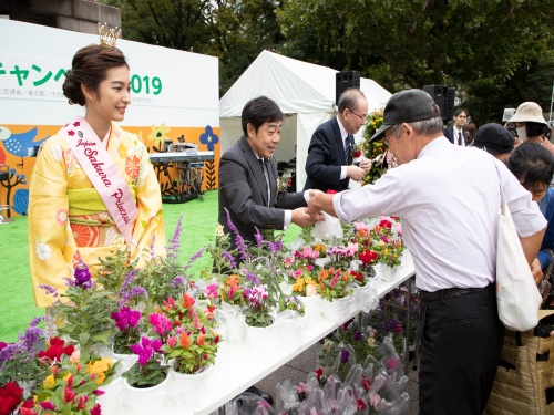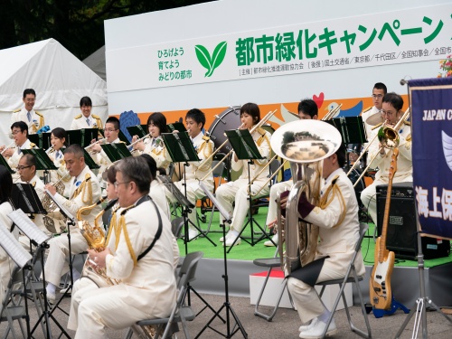 花鉢の配布や、全国都市緑化フェアのPR、海上保安庁音楽隊の演奏などを行っており、